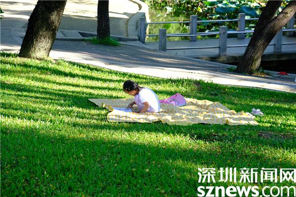 讀特客戶端·深圳新聞網(wǎng)2022年8月22日訊(記者 邱婕 劉嘉敏)八月下旬,盡管過(guò)了立秋,但夏天的步伐在深圳似乎特別緩慢,炎炎夏日,時(shí)間宛如停留在盛夏時(shí)節(jié)。但暑假的步伐依舊如期前行,一晃來(lái)到了暑假尾聲,8月22日,深圳新聞網(wǎng)記者來(lái)到洪湖公園,看看羅湖孩子們?nèi)绾巫プ 笆罴俚奈舶汀薄?/p>