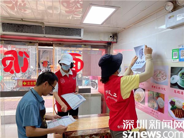 針對黃貝嶺村商鋪林立、餐飲企業(yè)較多的情況,活動當日,社區(qū)工作人員和黨員志愿者手拿垃圾分類宣傳資料分成兩個宣傳小分隊,進入黃貝嶺村,對沿街商鋪、餐飲門店張貼光盤行動海報及對過往的居民發(fā)放垃圾分類宣傳資料,零距離指導居民實施垃圾分類,并對村里電瓶車亂停放、亂擺賣等影響環(huán)境衛(wèi)生的不文明行為進行宣傳整治,引導居民環(huán)境衛(wèi)生從“整治”變“自治”,告別不文明行為。