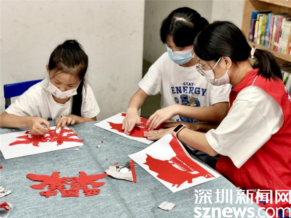 此外,在活動(dòng)現(xiàn)場還安排了紅色主題手工剪紙活動(dòng),孩子們一手拿著剪刀,一手拿著紙認(rèn)真專注地剪出和平鴿、天安門、五星紅旗等各式各樣的作品,現(xiàn)場氣氛熱烈濃厚。