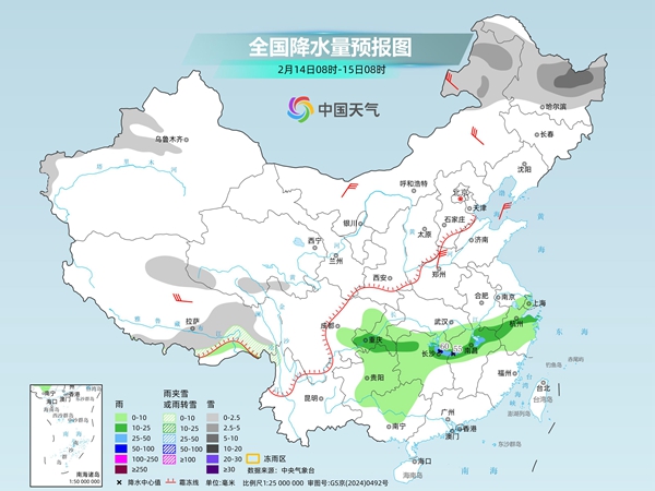 氣象部門提醒,明起至16日,南方新一輪降水來襲,江南部分地區(qū)有較強(qiáng)降雨伴雷電,臨近春節(jié)假期,公眾需注意防范降雨可能導(dǎo)致的道路濕滑、能見度下降等對交通出行的不利影響。