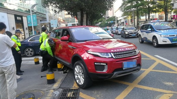 10月3日16時(shí)40分左右,正在羅湖區(qū)金光華路段開(kāi)展整治行動(dòng)的交警遇到一名女士求助,稱(chēng)車(chē)子卡在停車(chē)場(chǎng)出口的石墩上。