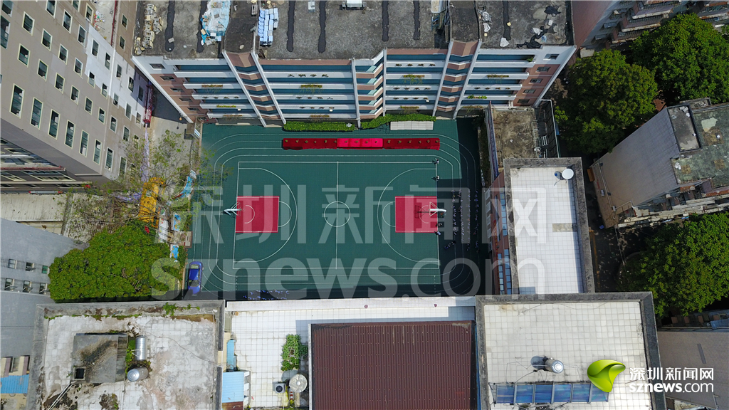 白石洲城中村內(nèi)的南山星河學校籃球場