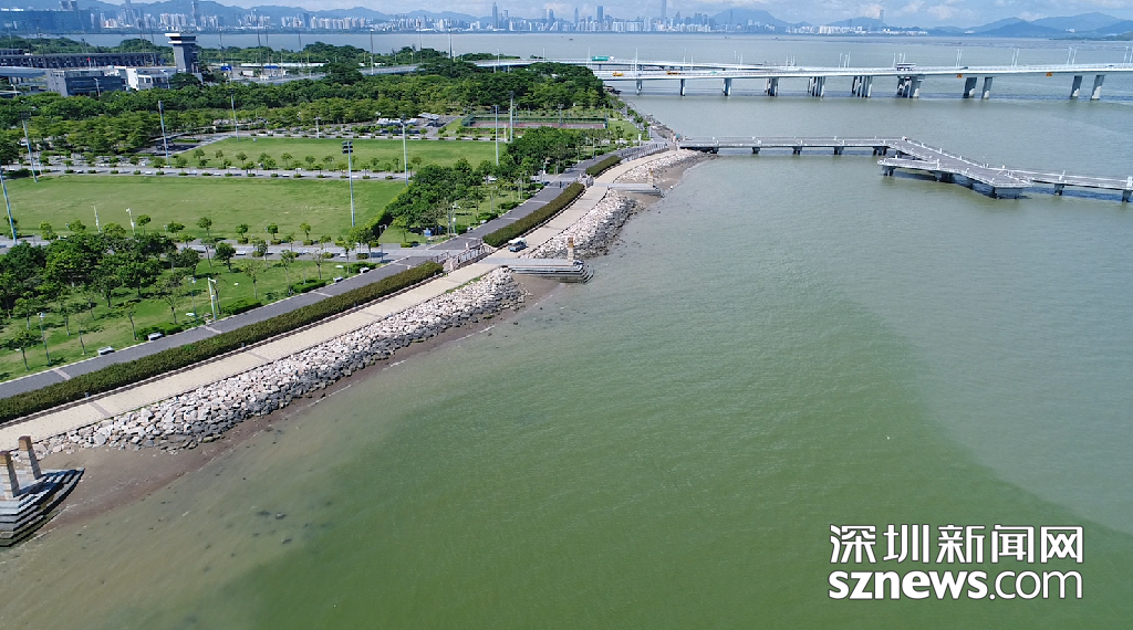 如果市民沿著步道繼續(xù)向西側(cè)行進(jìn),會發(fā)現(xiàn)E段蛇口望海的地段在歷史上曾為自然沙灘,石坡地形,向地面打進(jìn)樁柱作為步道的支撐,因?yàn)镋段有輸油管線,也讓休閑步道廣場變得別具一格,成為建設(shè)在管線上方的“空中廣場”。