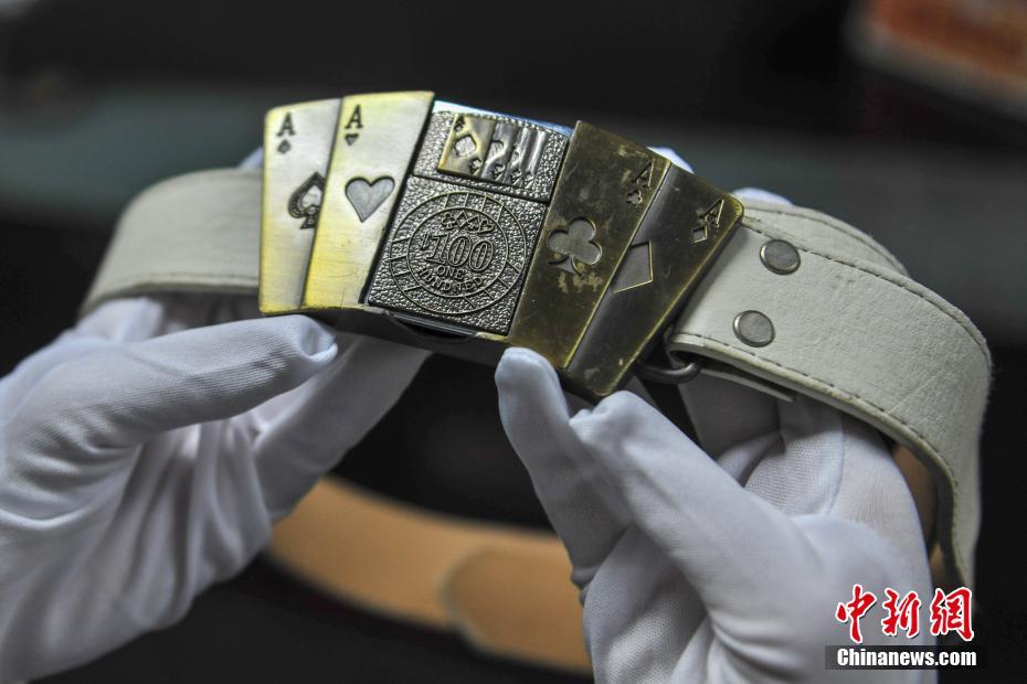 1月30日,遼寧沈陽(yáng),沈陽(yáng)桃仙國(guó)際機(jī)場(chǎng)安檢中心工作人員展示腰帶打火機(jī)。當(dāng)日在沈陽(yáng)桃仙國(guó)際機(jī)場(chǎng),展示了近期被查獲的手機(jī)打火機(jī)、口紅打火機(jī)、腰帶打火機(jī)等各類(lèi)打火機(jī)10余款。2018年春運(yùn)工作從2月1日即將開(kāi)始,為確保機(jī)場(chǎng)春運(yùn)工作安全、正常、有序,沈陽(yáng)桃仙國(guó)際機(jī)場(chǎng)安檢中心將加大檢查力度,嚴(yán)格執(zhí)行“三品”查堵制度,重點(diǎn)查處夾帶易燃易爆危險(xiǎn)品乘坐飛機(jī)。中新社記者于海洋 攝