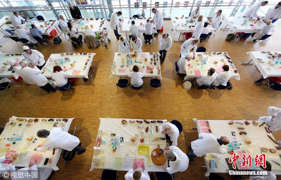 當?shù)貢r間2018年2月28日,德國愛爾福特,當?shù)嘏e辦香腸廚藝比賽。圖片來源:視覺中國