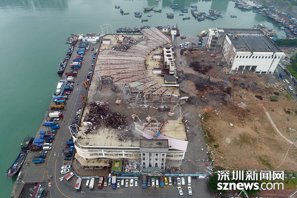 圖為4月16日漁人碼頭拆除現(xiàn)場(chǎng),對(duì)周邊漁船停泊和魚鋪經(jīng)營并未造成影響