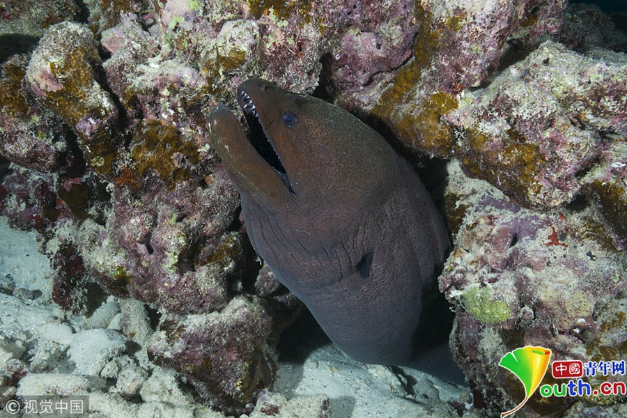 2018年5月7日訊(具體拍攝時間不詳),印度洋馬爾代夫水域,當(dāng)?shù)馗魃乃铩?/p>