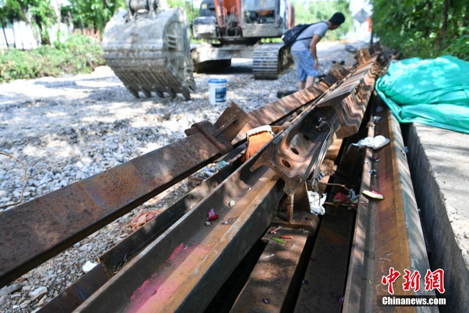 5月8日,滇越鐵路的鐵軌被拆除后堆放在工地旁。當(dāng)日,昆明地鐵4、5號(hào)線正在進(jìn)行建設(shè),由于施工影響,穿城而過的一段百年滇越鐵路被拆除,“老鐵路”為“新地鐵”建設(shè)讓步。據(jù)了解,在地鐵建設(shè)完工后,這段滇越鐵路將被重新鋪設(shè),恢復(fù)運(yùn)營(yíng)。中新社記者 任東 攝