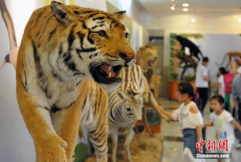 5月27日,各類飛禽走獸活靈活現(xiàn)地出現(xiàn)在民眾的眼前。正在福建博物院展出的第四屆中國動(dòng)物標(biāo)本大賽的257件惟妙惟肖的標(biāo)本作品集中對外開放,讓民眾如進(jìn)入“動(dòng)物世界”。本次大賽匯集了全國標(biāo)本制作企業(yè)、博物館、大專院校、研究所等60多家單位參加,標(biāo)本涵蓋哺乳類、鳥類、爬行類、兩棲類、魚類等動(dòng)物類群的皮張和骨骼標(biāo)本。主辦方希望通過標(biāo)本大賽,向公眾展現(xiàn)動(dòng)物世界的美麗,宣傳生物多樣性和生態(tài)文明,借鑒吸收國際標(biāo)本制作先進(jìn)經(jīng)驗(yàn),提高中國野生動(dòng)植物標(biāo)本制作的整體水平。圖為參賽的老虎標(biāo)本。中新社記者 張斌 攝