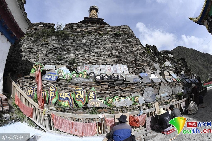 在四川阿壩州壤塘縣棒托寺內(nèi)珍藏約50萬(wàn)片明清時(shí)期鐫刻的大藏經(jīng)《甘珠爾》和《丹珠爾》,大藏經(jīng)左高9.7米,右高9.2米,長(zhǎng)46米、左寬160米,右寬13米,占地598平方米,是目前全世界保存最完整、規(guī)模最宏大、內(nèi)容最豐富的石刻大藏經(jīng)孤品。據(jù)史料記載,由明末清初60余名石匠辛勤鐫刻9年而成。石刻藏文經(jīng)書(shū)圖文并茂,筆法流暢,疏密有致,陰陽(yáng)相背,滿(mǎn)版生輝。具有極高的文物和藝術(shù)研究?jī)r(jià)值。圖為堆積的石刻大藏經(jīng)孤品。