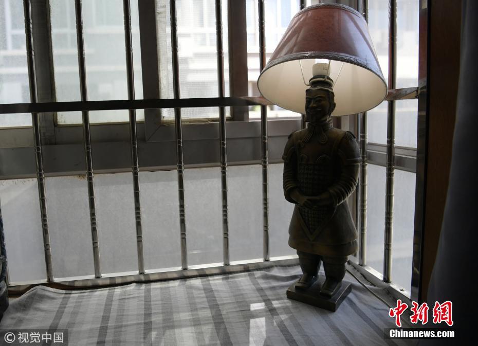 兵馬俑元素在這家民宿里被運用在各種小細(xì)節(jié)里,圖為兵馬俑造型的臺燈。圖片來源:視覺中國