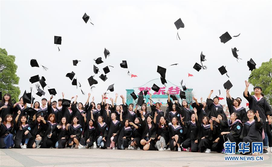 6月10日,畢業(yè)生們在歡樂谷廣場上拍合影。