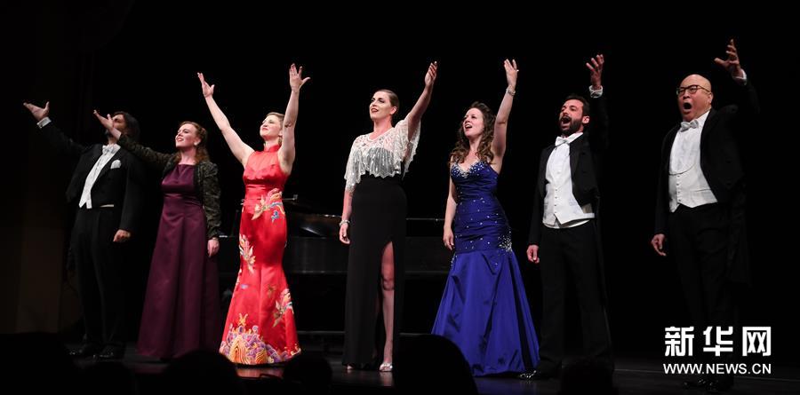 6月30日,在美國(guó)加利福尼亞州舊金山赫伯斯特劇院,著名華裔歌唱家田浩江(右一)和青年歌唱家們演唱《從茉莉花到圖蘭朵》。當(dāng)日,著名華裔歌唱家田浩江偕6位參加過(guò)iSING!國(guó)際青年歌唱家藝術(shù)節(jié)的歌唱家舉辦“田浩江舊金山演唱會(huì)”。iSING!國(guó)際青年歌唱家藝術(shù)節(jié)創(chuàng)辦于2011年,集教育、訓(xùn)練和演出于一體,為全球青年歌者提供學(xué)習(xí)和實(shí)踐的機(jī)會(huì)。在本場(chǎng)演唱會(huì)上,來(lái)自不同國(guó)家的藝術(shù)家們演唱中外經(jīng)典歌曲,為觀眾獻(xiàn)上一臺(tái)中西文化交融的聽覺(jué)盛宴。新華社記者吳曉凌攝