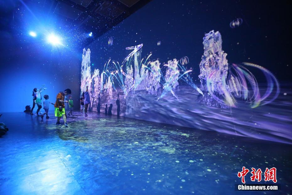 7月5日,民眾欣賞“尋夢海底兩萬里深海之光”沉浸式藝術(shù)展。當(dāng)日,該展在北京嘉德藝術(shù)中心開幕。展覽是以“深海之光”為主題的海底光影沉浸式藝術(shù)展,創(chuàng)意藝術(shù)團(tuán)隊(duì)利用數(shù)字技術(shù)和水打造出一個(gè)能夠感受到“生命”的深海世界。中新社記者楊可佳 攝