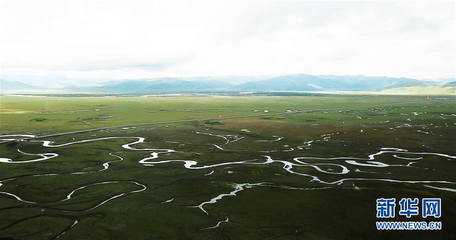 這是瑪曲縣阿萬(wàn)倉(cāng)濕地(7月31日無(wú)人機(jī)拍攝)。 新華社記者 陳斌 攝