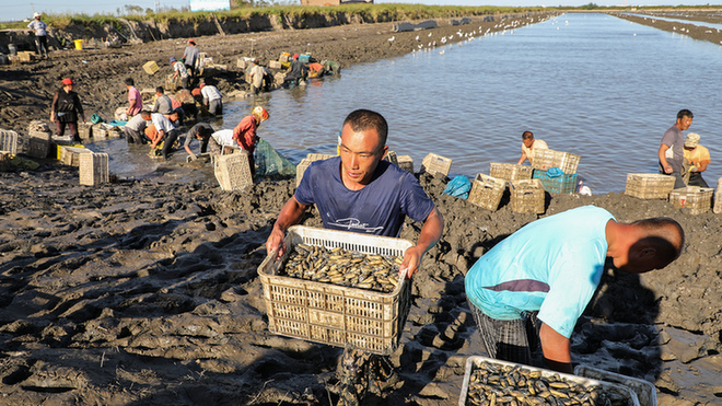 遼寧丹東千人挖蟶場(chǎng)面壯觀 六十歲農(nóng) ...
