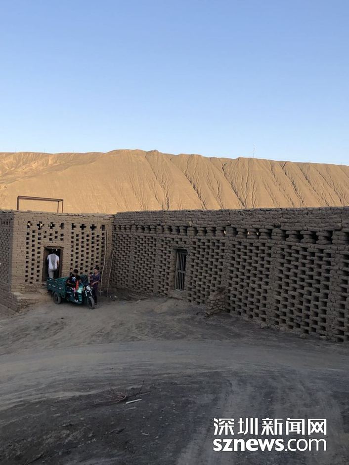??? ?在葡萄溝,隨處都可見到土磚砌成的鏤空方格子土屋,構(gòu)成了當(dāng)?shù)匾坏廓?dú)特的風(fēng)景,原來(lái)這是專門用來(lái)晾葡萄干的場(chǎng)地。 趙春麗攝