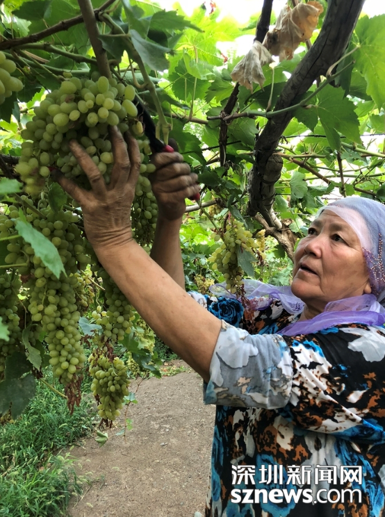 維族老鄉(xiāng)采摘葡萄? 趙春麗攝