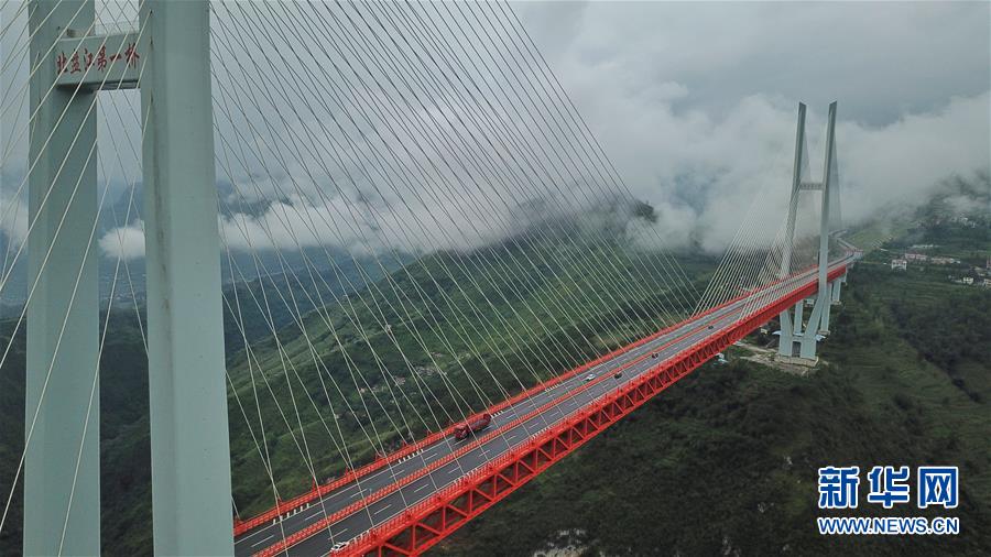 8月9日無(wú)人機(jī)航拍的北盤(pán)江大橋。 新華社記者歐東衢攝