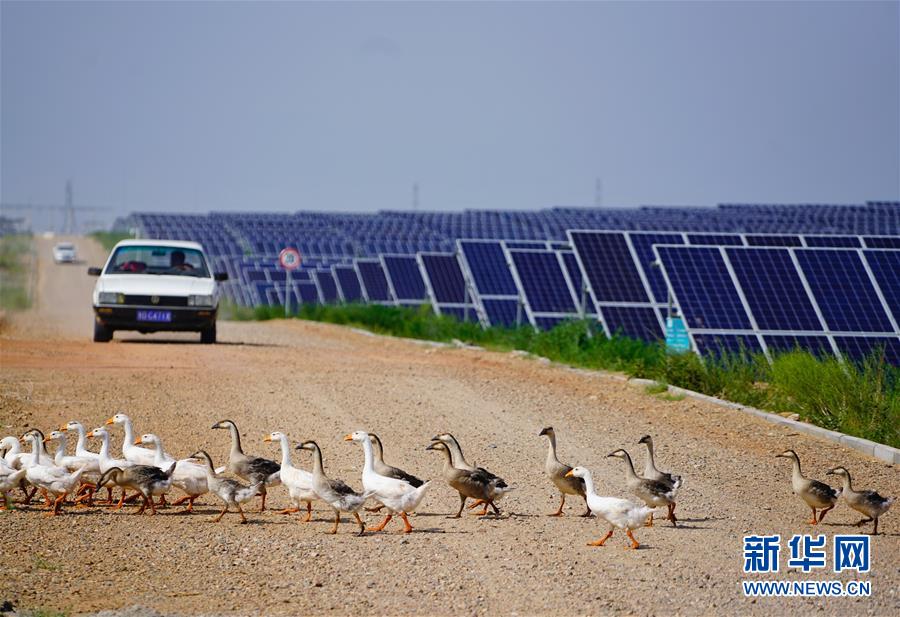 這是內(nèi)蒙古鄂爾多斯市杭錦旗庫布其沙漠生態(tài)太陽能光伏光熱治沙發(fā)電綜合示范地(8月1日攝)?!鞍迳习l(fā)電、板下種草、板間養(yǎng)殖”,目前該太陽能發(fā)電項目治沙面積達(dá)到了13.3平方公里,每年發(fā)電5億千瓦時,實現(xiàn)銷售收入4.5億元。其社會效益、生態(tài)效益、民生效益、經(jīng)濟效益十分顯著。 巍巍陰山南麓,鄂爾多斯高原之北,橫臥著一條長約400公里、寬5-65公里的黃色“長龍”。它似弓弦,將滔滔黃河拉出一個大大的“幾”字彎。 這是中國第七大、也是距北京最近的沙漠——庫布其沙漠,曾經(jīng)寸草不生,風(fēng)沙肆虐,被稱為“死亡之海”。 幾十年來,庫布其人一代接著一代干,書寫了一部荒漠化治理的英雄史詩。 新華社記者 邢廣利 攝