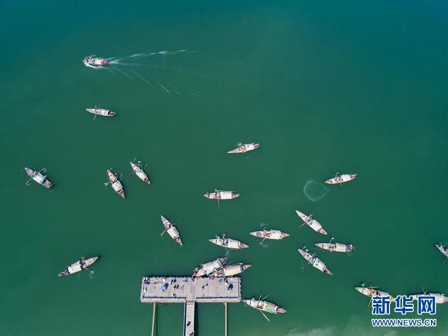 9月18日,漁民們乘坐漁船在富春江里捕撈江鮮(無人機拍攝)。 當日,浙江省杭州市富陽區(qū)場口鎮(zhèn)東梓關村開啟“江鮮大會”,數(shù)十艘小漁船一起駛向富春江江面,拉開了秋分節(jié)氣前捕撈江鮮的序幕。 東梓關村有著1000多年歷史,水陸交通方便,自古就是富春江南岸重要的商貿(mào)集散地,素有富春江“東流第一關”之稱。隨著近年來美麗鄉(xiāng)村建設的推進,東梓關村著力打造白墻黛瓦的江南民居,同時依托富春江豐富的江鮮魚類資源,在秋季舉辦特色“江鮮大會”,通過舉辦江鮮捕撈體驗、江鮮第一鍋開鍋、百鮮宴、鄉(xiāng)村小型音樂會、農(nóng)家菜大賽等活動,吸引各地游客前來感受富春江漁民豐收的喜悅和江南千年古村的獨特魅力,推動鄉(xiāng)村特色旅游發(fā)展。 新華社記者徐昱攝