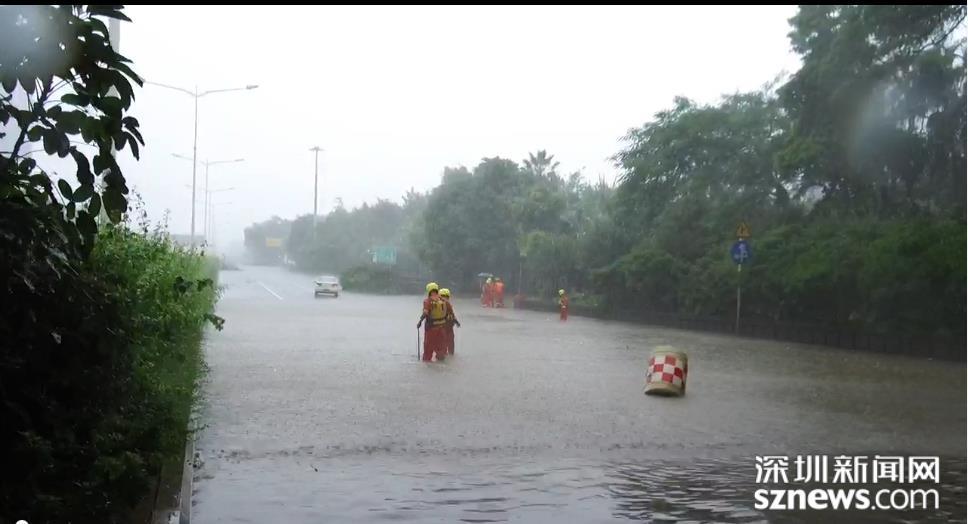 福田區(qū)位于北環(huán)皇崗立交,深圳市水務(wù)集團(tuán)福田分公司梅林所防洪排澇人員,趁風(fēng)勢雨小,打開雨水箅子排積水。