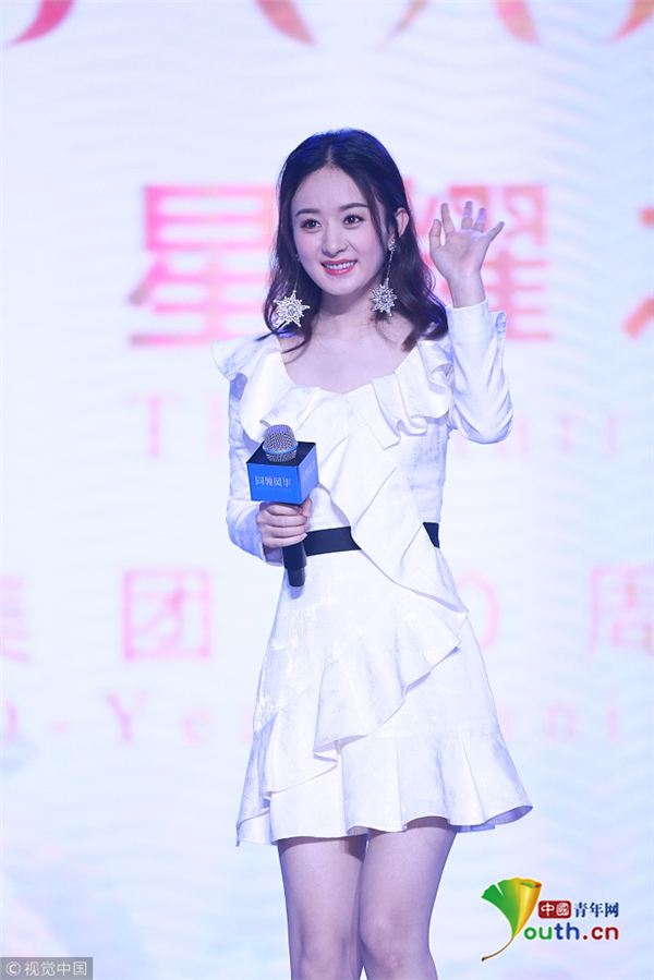 趙麗穎荷葉邊連衣裙亮相 甜美迷人