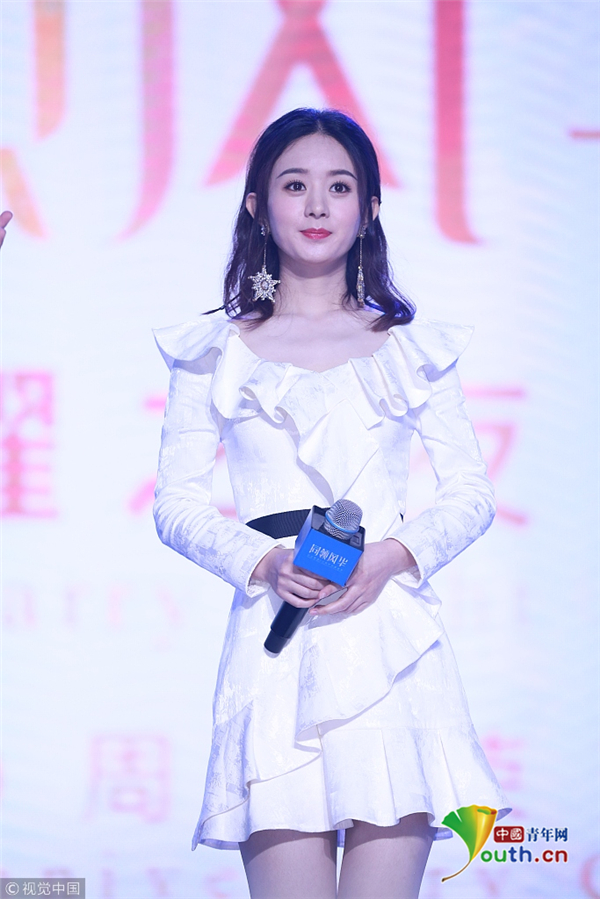 趙麗穎荷葉邊連衣裙亮相 甜美迷人