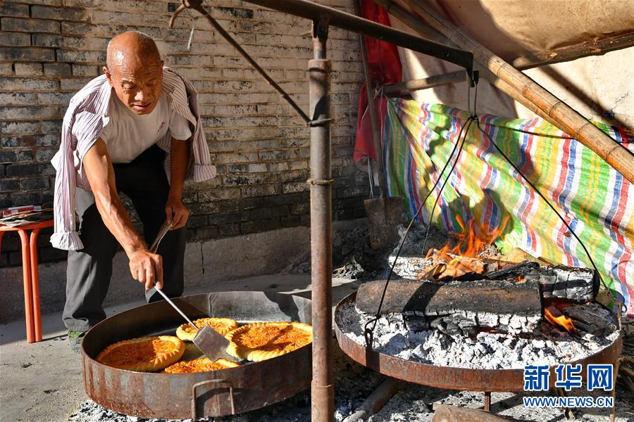 9月22日,段富善在翻看月餅的烘烤情況。 中秋節(jié)來臨之際,山西省晉城市澤州縣南嶺鄉(xiāng)段河村的段富善一家人忙碌起來,他們家制作的“柴火月餅”遠(yuǎn)近聞名。 “柴火月餅”起源于明清時(shí)期,餡料以糖搭配花生仁、芝麻、玫瑰等,有近10道制作工序,其中最有特色的是木柴烤制工藝,烘烤師傅必須掌握好火候,才能烤出外皮酥脆、餡料飄香的月餅。 新華社記者 曹陽 攝