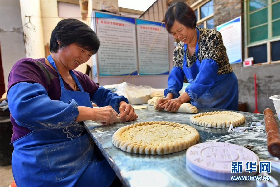 9月22日,段河村村民段粉拽(左)和段金花在制作月餅。 中秋節(jié)來臨之際,山西省晉城市澤州縣南嶺鄉(xiāng)段河村的段富善一家人忙碌起來,他們家制作的“柴火月餅”遠(yuǎn)近聞名。 “柴火月餅”起源于明清時(shí)期,餡料以糖搭配花生仁、芝麻、玫瑰等,有近10道制作工序,其中最有特色的是木柴烤制工藝,烘烤師傅必須掌握好火候,才能烤出外皮酥脆、餡料飄香的月餅。 新華社記者 曹陽 攝