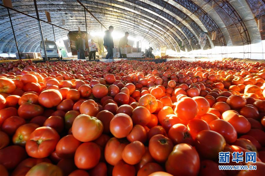 9月23日,河北省灤縣小馬莊鎮(zhèn)郎紅棚菜專業(yè)合作社的農(nóng)民在整理收獲的西紅柿。
