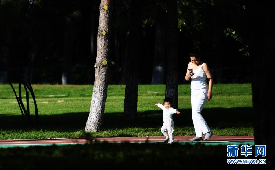 9月25日,一名家長帶著孩子在湘江公園內(nèi)游玩。 當日,哈爾濱市湘江公園正式開園迎客。這個集休閑、健身、娛樂、觀賞于一體的多功能都市公園由高爾夫球場改造而成,免費對市民和游客開放。 新華社記者 王建威 攝