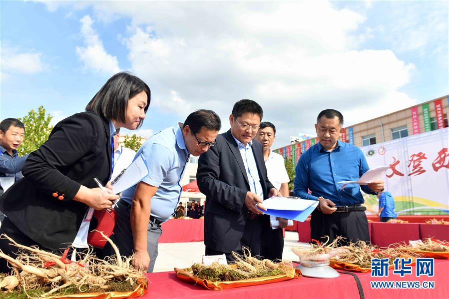 9月26日,在威海市文登區(qū)張家產(chǎn)鎮(zhèn),評(píng)委們?cè)谠u(píng)判西洋參。新華社記者 郭緒雷 攝
