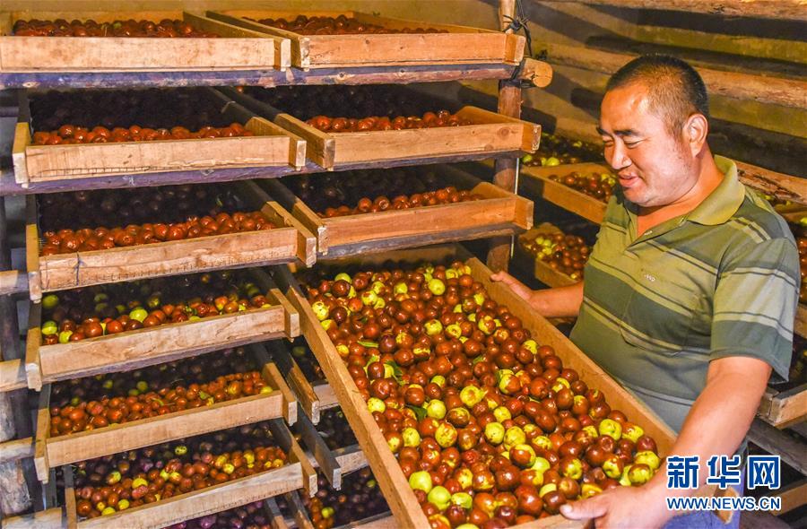 9月22日,河北省棗強縣棗強鎮(zhèn)孟家莊村的棗農(nóng)將紅棗放進(jìn)蒸房。 近日,河北省棗強縣的2000多畝棗園迎來收獲季,棗農(nóng)們搶抓農(nóng)時,采摘、篩選、晾曬紅棗,樂享秋收的快樂。 新華社記者李曉果攝
