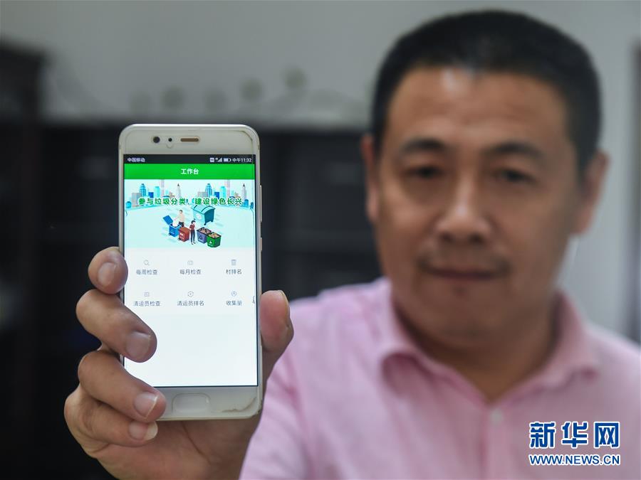 9月27日,工作人員展示垃圾分類APP的界面。從9月初開始,浙江省長興縣小浦鎮(zhèn)推廣使用手機(jī)垃圾分類智能管理平臺。通過這款A(yù)PP可以進(jìn)行村民垃圾分類情況打分、清運(yùn)員每日簽到、監(jiān)督員巡查等,并能即時生成農(nóng)戶垃圾分類“成績單”,所有農(nóng)戶均可通過APP查詢垃圾分類排行榜,既方便又環(huán)保。新華社記者 徐昱 攝