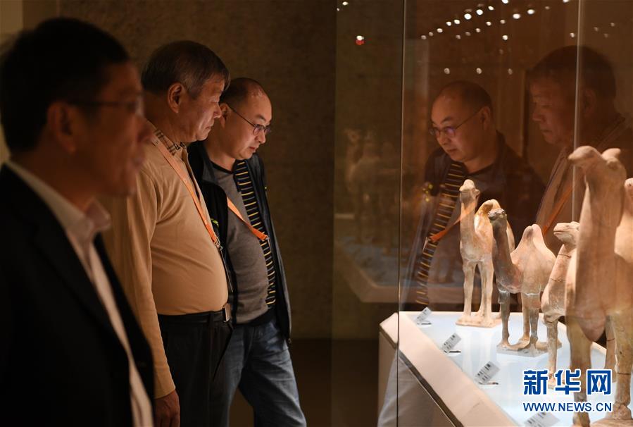 9月27日,在敦煌國(guó)際會(huì)展中心,參觀者欣賞“古道天馬——絲綢之路上的交通”展覽。新華社記者范培珅攝