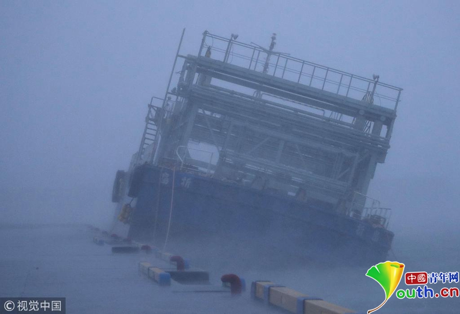 臺風(fēng)“潭美”強勢襲擊日本 游船歪倒在岸邊