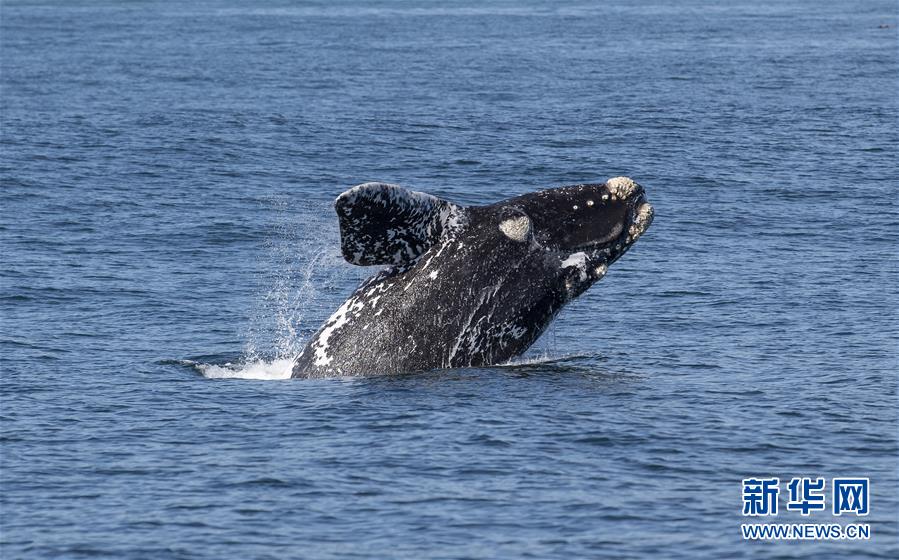 9月30日,在南非赫曼紐斯小鎮(zhèn)附近海面上,一頭南露脊鯨躍出海面。9月29日,位于開普敦以東約115公里的赫曼紐斯小鎮(zhèn)迎來(lái)2018年的鯨魚節(jié),來(lái)自世界各地的游客可乘船出海觀鯨,也可在岸邊等待鯨魚的到來(lái)。新華社記者陳誠(chéng)攝