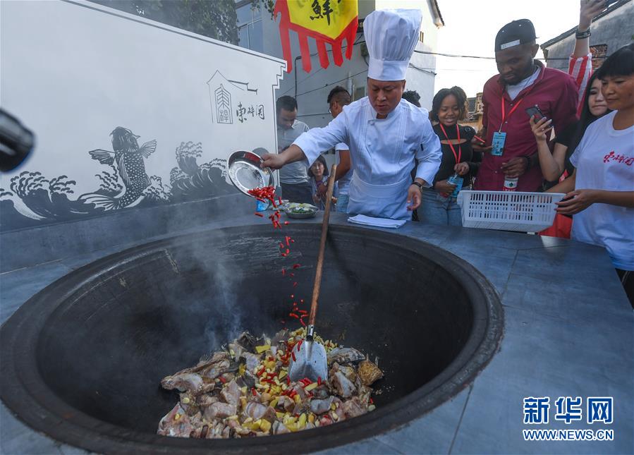 9月30日,廚師在中外游客的圍觀下烹飪“江鮮第一鍋”。當(dāng)日,浙江省杭州市富陽區(qū)場口鎮(zhèn)東梓關(guān)村開啟“江鮮第一鍋”,幾位大廚聯(lián)手在直徑1.5米的大鍋內(nèi)烹制美味江鮮,這也是當(dāng)?shù)亍敖r大會(huì)”的重頭戲。東梓關(guān)村有著1000多年歷史,古就是富春江南岸重要的商貿(mào)集散地,素有富春江“東流第一關(guān)”之稱。隨著近年來美麗鄉(xiāng)村建設(shè)的推進(jìn),東梓關(guān)村著力打造粉墻黛瓦的江南民居,同時(shí)依托富春江豐富的江鮮魚類資源,在秋季舉辦特色“江鮮大會(huì)”,通過江鮮捕撈體驗(yàn)、江鮮第一鍋、百鮮宴、農(nóng)家菜大賽等活動(dòng),吸引各地游客前來感受富春江漁民豐收的喜悅和千年古村的獨(dú)特魅力,推動(dòng)鄉(xiāng)村特色旅游發(fā)展。新華社記者徐昱攝