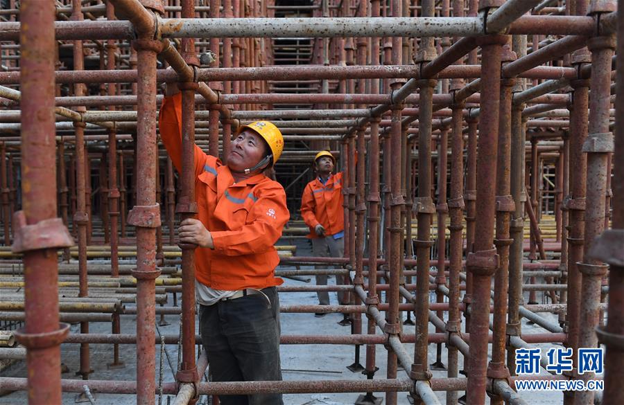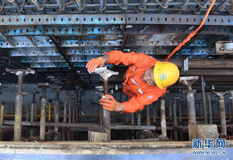 10月1日,建筑工人在雅康高速瀘定大渡河興康特大橋施工現(xiàn)場作業(yè)。當(dāng)日是國慶節(jié),許多勞動(dòng)者堅(jiān)守在工作一線,在崗位上度過節(jié)日。新華社記者江宏景攝