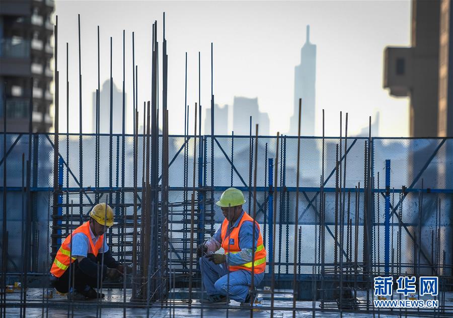10月1日,中建三局三公司建筑工人在南京世茂外灘新城項(xiàng)目現(xiàn)場施工。當(dāng)日是國慶節(jié),許多勞動(dòng)者堅(jiān)守在工作一線,在崗位上度過節(jié)日。新華社記者李響攝