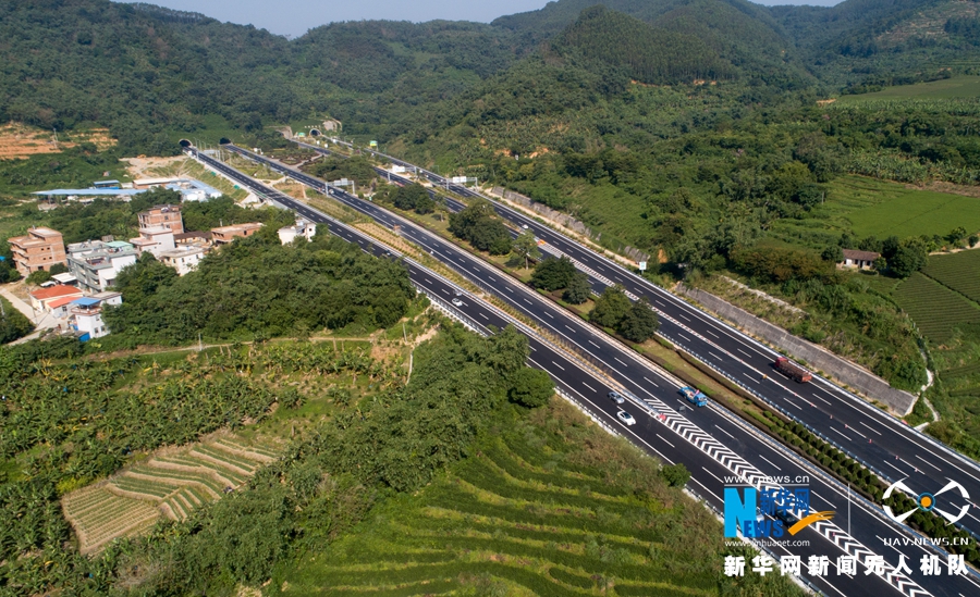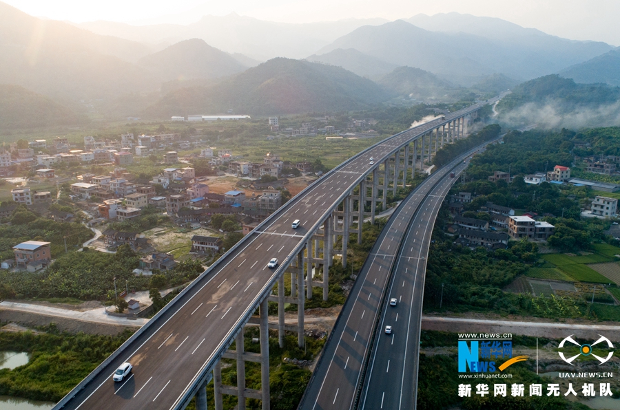 這是改擴(kuò)建工程施工后的廈蓉高速南靖縣和溪路段(無(wú)人機(jī)拍攝)。新華網(wǎng) 肖和勇 攝