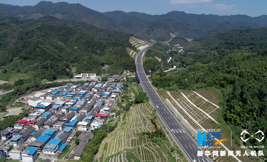 實(shí)施改擴(kuò)建工程之后,路面拓寬了(無(wú)人機(jī)拍攝)。新華網(wǎng) 肖和勇 攝