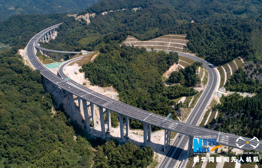 這是廈蓉高速長(zhǎng)下坡龍巖路段的道路景觀(無(wú)人機(jī)拍攝)。新華網(wǎng) 肖和勇 攝