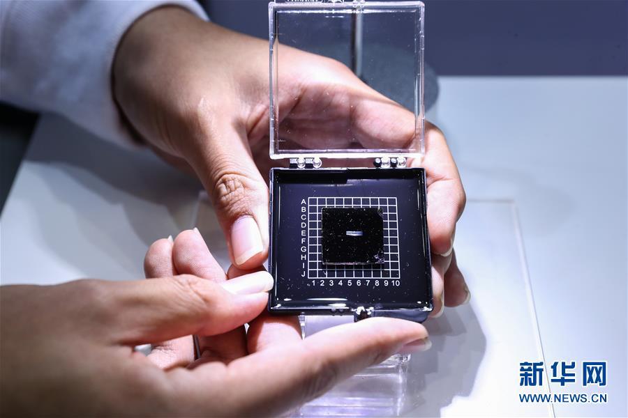 10月8日,工作人員在媒體開(kāi)放日上展示光子人工智能芯片。
