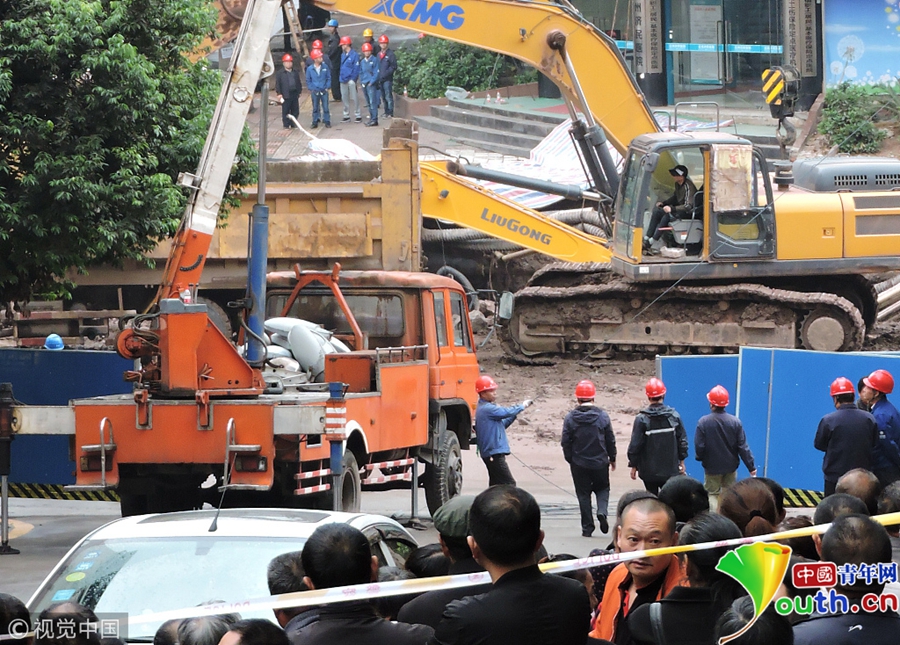 中國(guó)青年網(wǎng)北京10月9日電 2018年10月8日消息,四川達(dá)州。10月8日從四川省達(dá)州市達(dá)川區(qū)委宣傳部獲悉,7日14時(shí)30分左右,達(dá)川區(qū)東環(huán)南路103號(hào)人行道路面發(fā)生塌陷險(xiǎn)情,經(jīng)調(diào)取視頻監(jiān)控和走訪周邊群眾,救援人員初步判斷疑似有4人掉入坑中。圖片作者:視覺中國(guó)