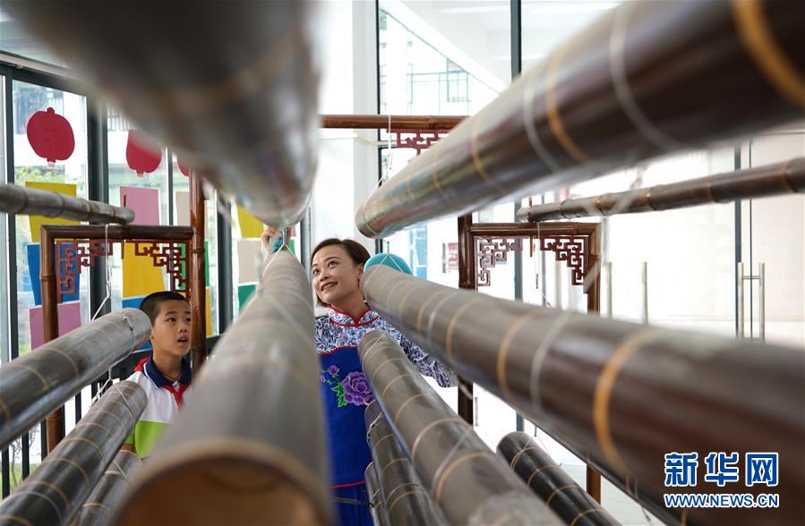 10月8日,崇義縣竹樂樂團的演員在教學生演奏竹排琴。 近年來,江西省崇義縣思源實驗學校定期開設竹樂課,邀請崇義縣竹樂樂團的演員教授學生演奏竹排琴、竹板琴等竹樂樂器,激發(fā)學生了解傳統(tǒng)文化的熱情。 新華社記者胡晨歡攝