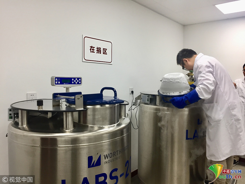 2018年9月20日,上海,實拍復(fù)旦大學(xué)人類精子庫。在復(fù)旦大學(xué)人類精子庫,志愿者捐獻出的精液被保存在液氮中。圖片作者:陳斯斯