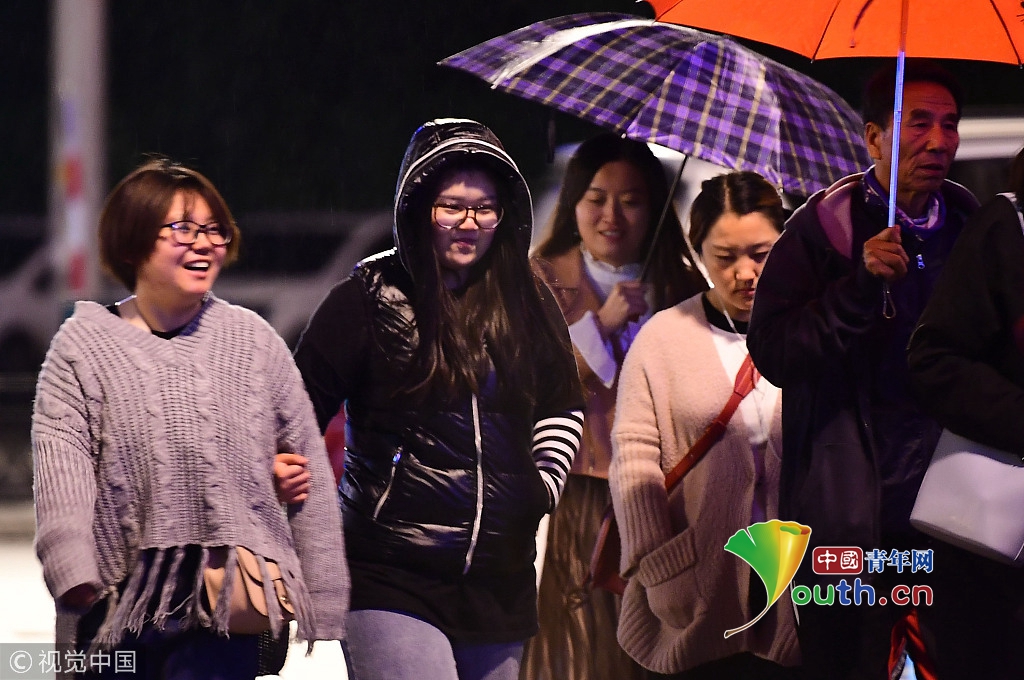 北京冷空氣來襲 游客紛紛著秋冬裝游覽天安門