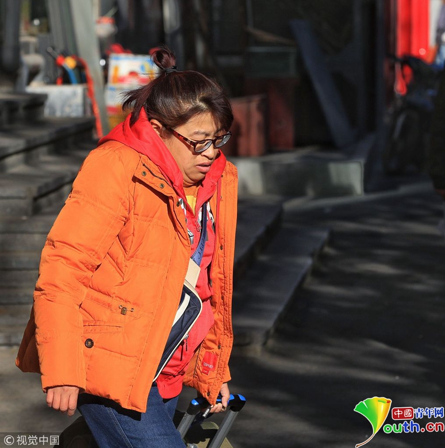 北京冷空氣來(lái)襲 游客紛紛著秋冬裝游覽天安門